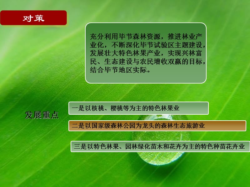 2. 推進綠色發(fā)展:發(fā)展低碳、環(huán)保、可持續(xù)的林業(yè)產(chǎn)業(yè),實現(xiàn)林業(yè)資源的高效利用和可持續(xù)發(fā)展。