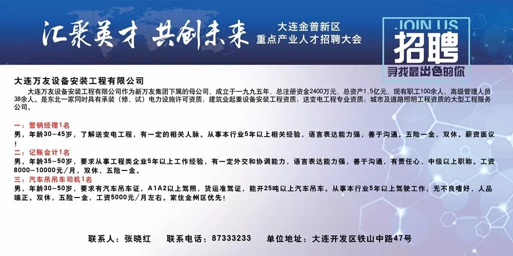 轉(zhuǎn)載請(qǐng)注明來(lái)自馬鞍山市深藍(lán)光電有限責(zé)任公司,本文標(biāo)題:《大連后鹽招聘最新資訊》
