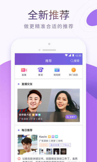 2、視頻認(rèn)證:新增視頻認(rèn)證功能,確保用戶(hù)資料真實(shí)可靠,提高交友安全性。