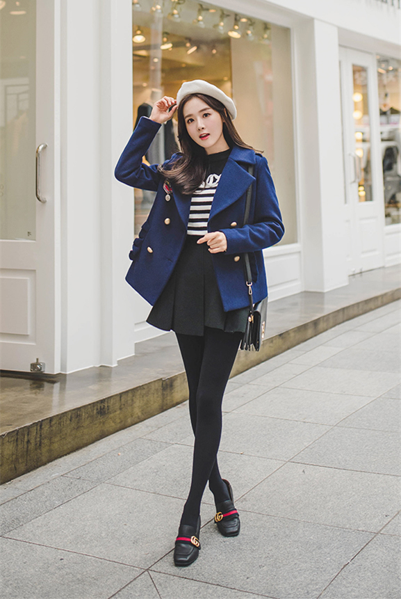?? 第一種搭配:羽絨服+毛呢大衣+緊身褲+馬丁靴