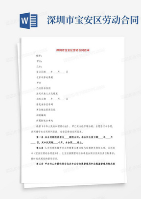 摘要:深圳勞動合同最新版旨在保障勞動者和雇主的權(quán)益,明確雙方的責(zé)任和義務(wù)。該合同詳細(xì)規(guī)定了工作內(nèi)容、工資待遇、工作時間、保險(xiǎn)福利等關(guān)鍵事項(xiàng),確保雙方在雇傭關(guān)系中的公平和合法。該版本的推出有助于減少勞動糾紛,維護(hù)社會穩(wěn)定,促進(jìn)雇主和勞動者之間的和諧關(guān)系。